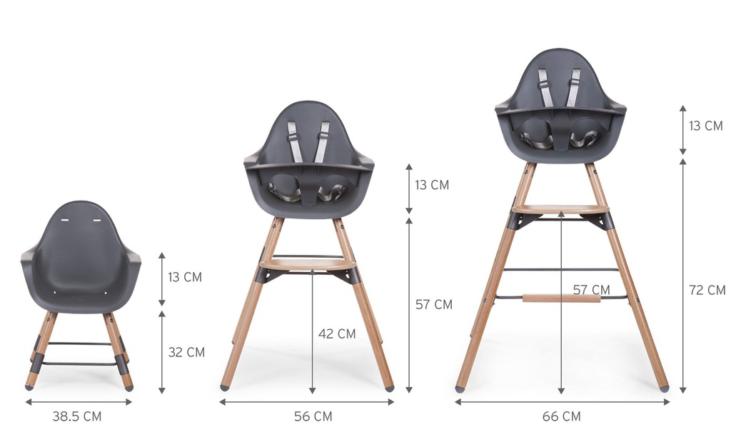 Cette chaise haute tendance 2-en-1 peut être réglée sur 2 hauteurs de table: une table à manger standard de 75 cm et une table enfant de 50 cm. Un ensemble de pieds extra longs est disponible en option pour ajuster la hauteur de la chaise haute à un îlot de cuisine de 90 cm. Grâce à l'assemblage facile, le changement de hauteur est très simple. Le siège d'enfant peut également être utilisé dès la naissance en combinaison avec le siège Newborn Seat. La tablette à manger réglable en profondeur est disponible en option, votre enfant a sa propre table. La chaise haute Evolu 2 est dotée d'une ceinture de sécurité à 5 points et d'un arceau amovible pour assurer la sécurité de votre enfant.